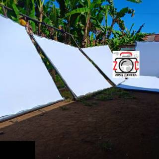 Background foto putih polos ukuran 6x2,36 meter.